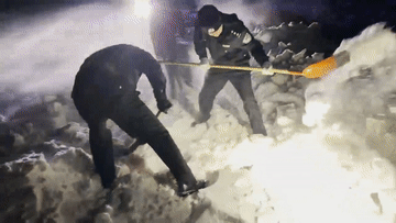 赵东岳等人挥着铁锹,奋力铲雪。由于奎克乌苏达坂海拔3300米,挖雪时呼吸困难,狂风也给救援增加了难度。民警们用了1个半小时,终于挖出一条两米宽、300米长的路,顺利到达被困车辆处。