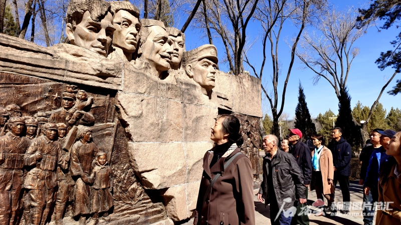 3月27日,乌鲁木齐市沙依巴克区环卫路街道马料地社区的老党员和退伍老兵们及工作人员一起参观了烈士陵园。石榴云/新疆日报记者 杨斌摄
