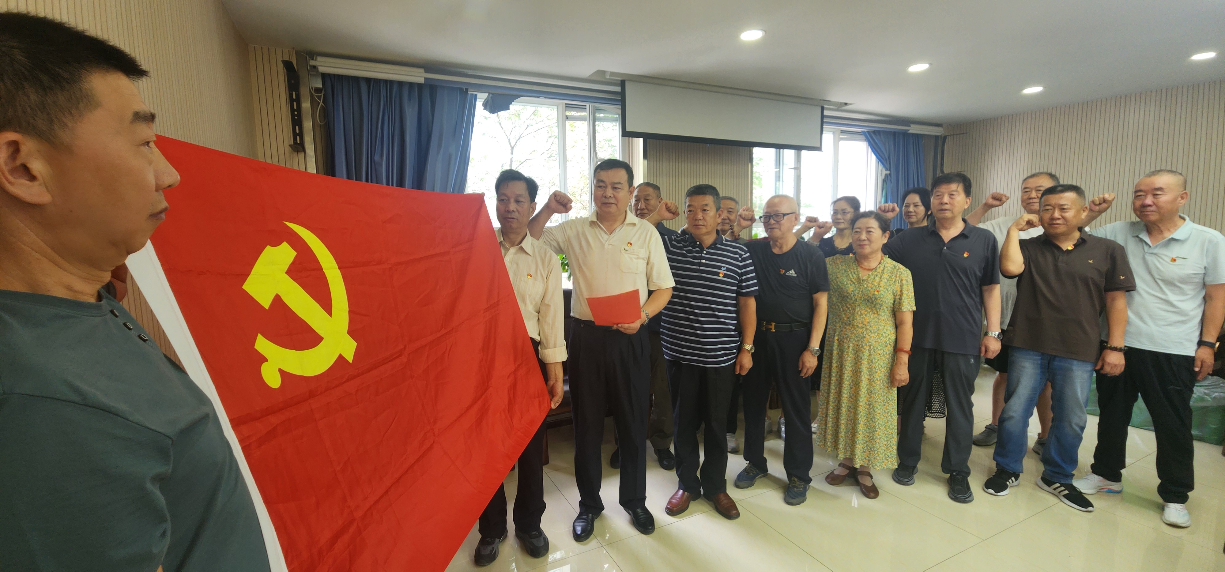 7月1日,乌鲁木齐市公安局沙依巴克区分局老干部党支部的退休党员重温入党誓词。受访单位供图