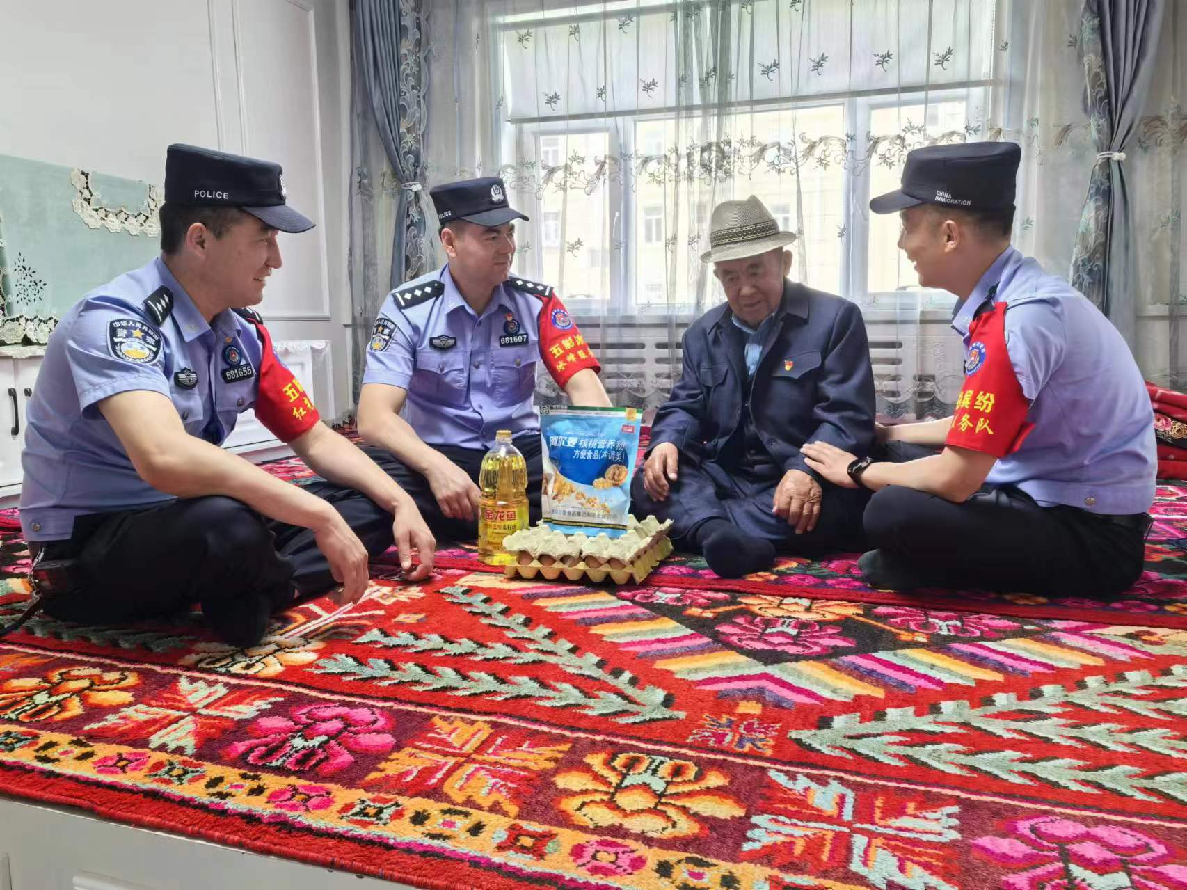 新疆出入境边防检查总站哈密边境管理支队盐池边境派出所民警走访慰问辖区退休党员。通讯员 施志忠摄