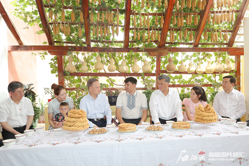 7月9日,天津市委书记陈敏尔,自治区党委书记、兵团党委第一书记、第一政委马兴瑞等来到于田县托格日尕孜乡托格日尕孜村,走访慰问阿布杜热西提·买吐送一家。天山网-新疆日报记者 崔志坚摄