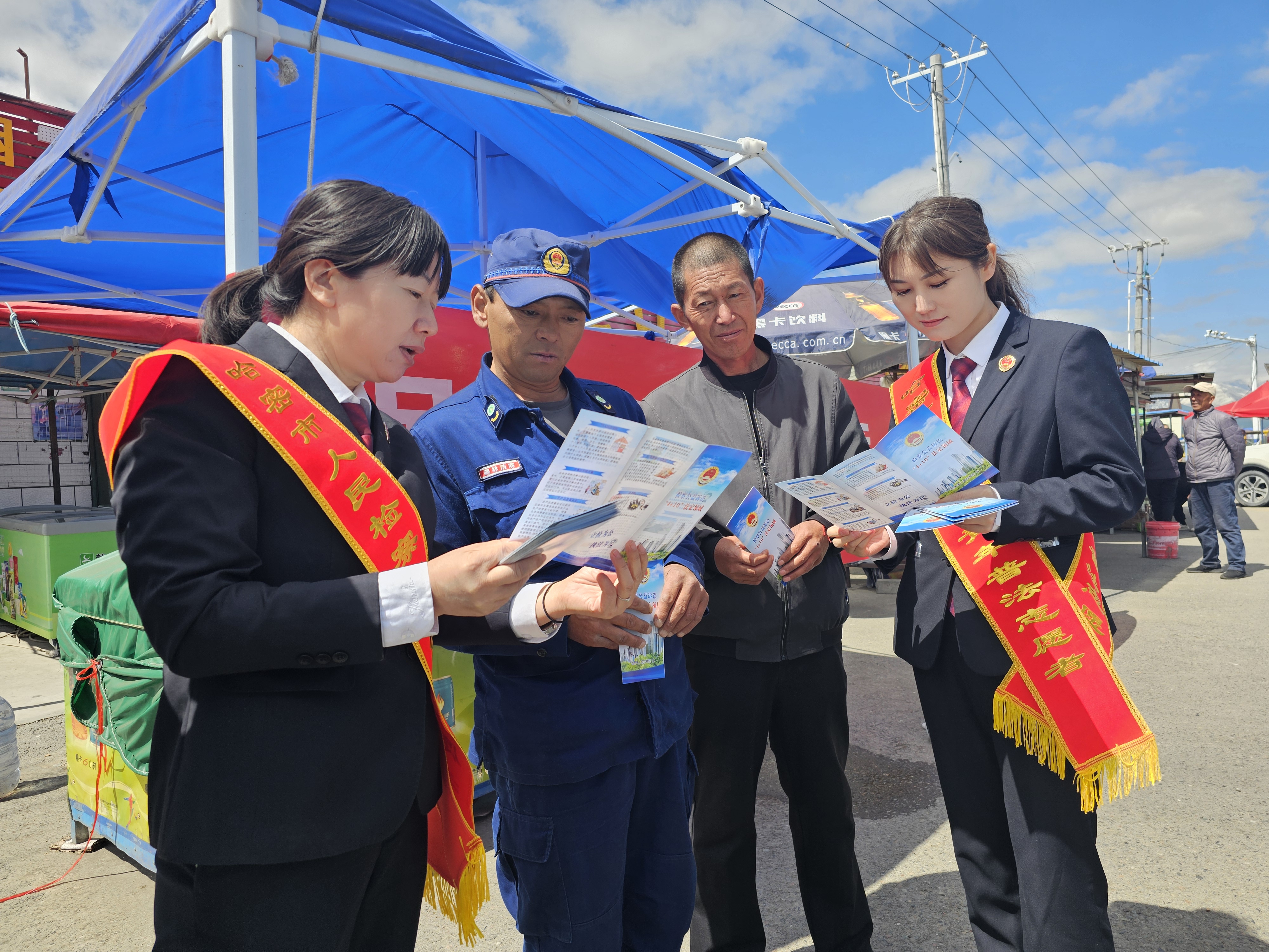 6月5日,哈密市人民检察院联合自治区天山东部国有林管理局哈密分局人员在白石头景区开展环境保护宣传。 受访单位供图