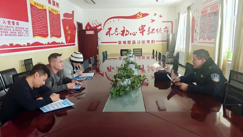 额敏县公安局民警进企业开展打击网络谣言宣传活动。受访单位供图