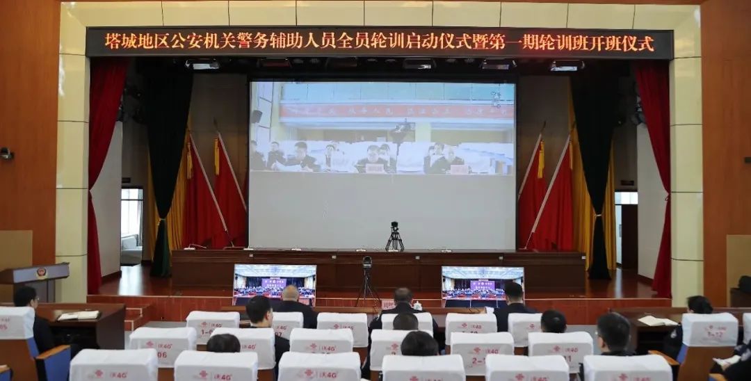 塔城地区公安机关警务辅助人员全员轮训启动仪式暨第一期轮训班开班仪式现场。受访单位供图