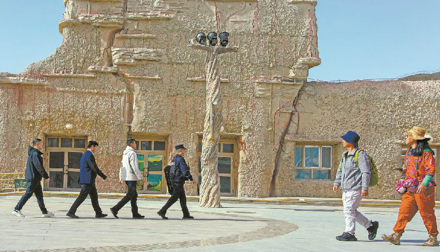 4月6日,由民警、专职调解员、景区管理人员组成的巡逻组在世界魔鬼城景区排查安全隐患。 庞博 摄