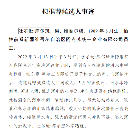 - 新疆维吾尔自治区拟推荐第十五届全国见义勇为英雄模范候选人事迹公示