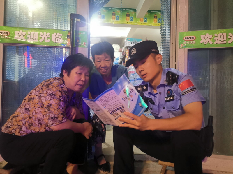 郑祥进给辖区群众宣传派出所工作业务。通讯员 芦胜磊摄