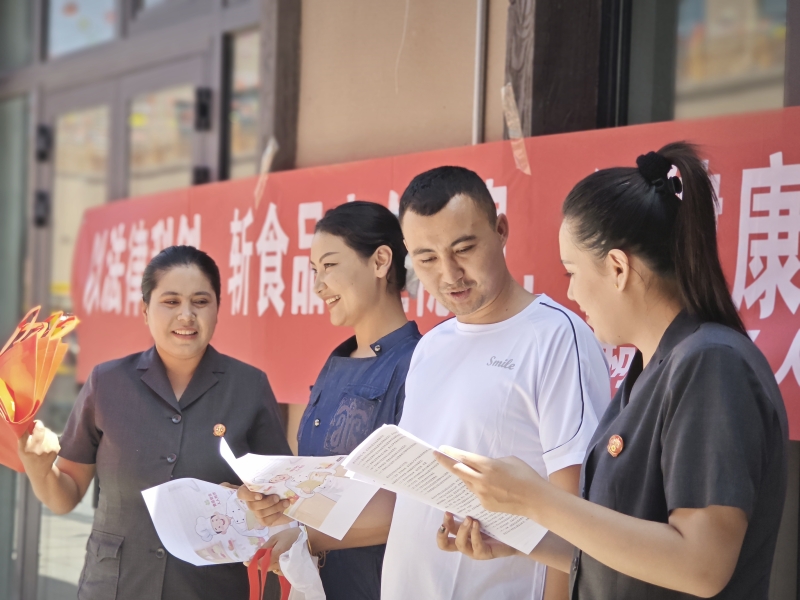 乌什县人民法院组织干警走访辖区餐饮店、农贸市场及食品加工坊,开展食品安全普法活动。干警自制宣传册,以图文形式展示硼砂、苏丹红、脱氢乙酸等常见食品非法添加剂的危害及违规添加的法律责任,通过“场景化”释法敲响食品安全警钟。