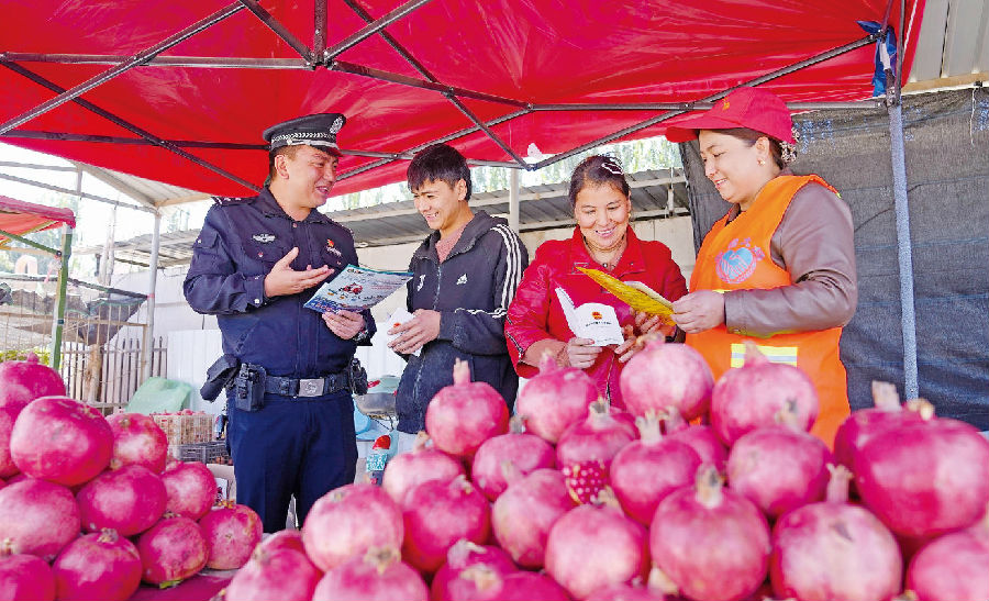 2025年10月,叶城县公安局伯西热克镇派出所组织“石榴大妈”志愿服务队开展普法宣传。 通讯员 程超摄