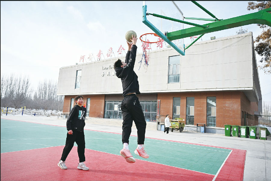A+ | a1月26日,当地居民在阿合奇县县城一处室外篮球场运动。