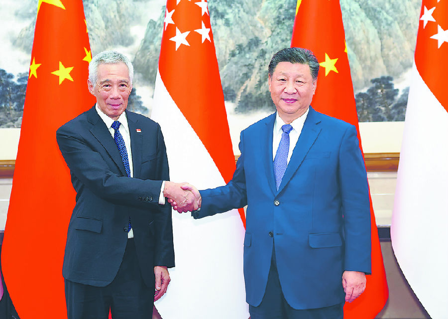 习近平积极评价李显龙担任新加坡总理期间带领新加坡取得显著成就,并长期关心和支持中新合作。习近平指出,去年我们共同确立了中新全方位高质量的前瞻性伙伴关系,为两国关系发展明确了战略方向。明年是中新建交35周年,双方要密切高层往来,进一步加强发展战略对接,深化各领域合作,为两国人民带来更多福祉,为地区和平繁荣作出更大贡献。
