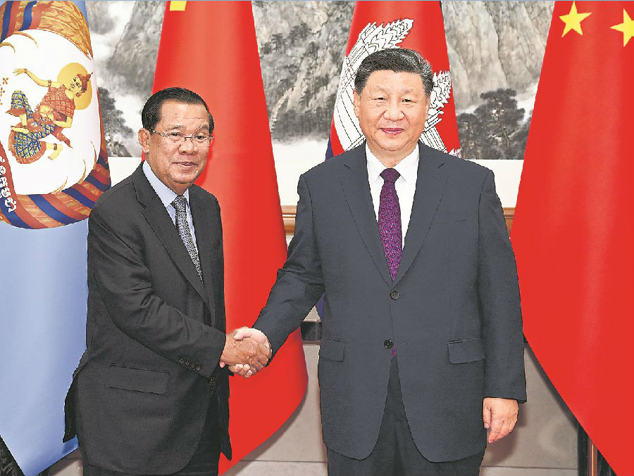 习近平表示,中柬铁杆友谊成色十足,完全符合两国人民共同利益。中方始终将柬埔寨作为周边外交重点方向,愿同柬方携手打造高质量、高水平、高标准的新时代中柬命运共同体。双方一要坚定相互支持,巩固铁杆友谊。中方将坚定支持柬埔寨维护国家主权、安全、发展利益。二要深化交流互鉴,共谋发展振兴。中国共产党愿同柬埔寨人民党加强战略沟通和干部培训合作,助力柬埔寨探索符合本国国情的发展道路。三要把握合作机遇,开拓共赢新局。中方愿同柬方以落实新版命运共同体行动计划为主线,不断充实“钻石六边”合作架构,制定“工业发展走廊”和“鱼米走廊”合作规划,推动重点合作项目落地见效,助力共建“一带一路”倡议和柬埔寨“五角战略”高质量对接。