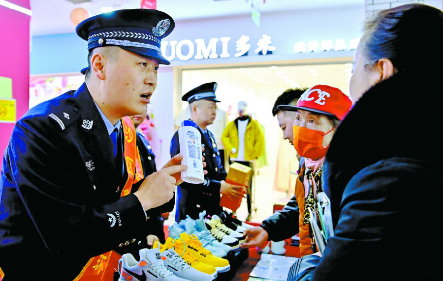 当日,该所联合乌市沙依巴克区司法局西山司法所在辖区商超开展“3·15”国际消费者权益日普法活动,通过现场答疑、发放宣传单等方式,引导群众增强依法维权意识、提高识假防假能力。石榴云/新疆法治报记者 单坤 摄
