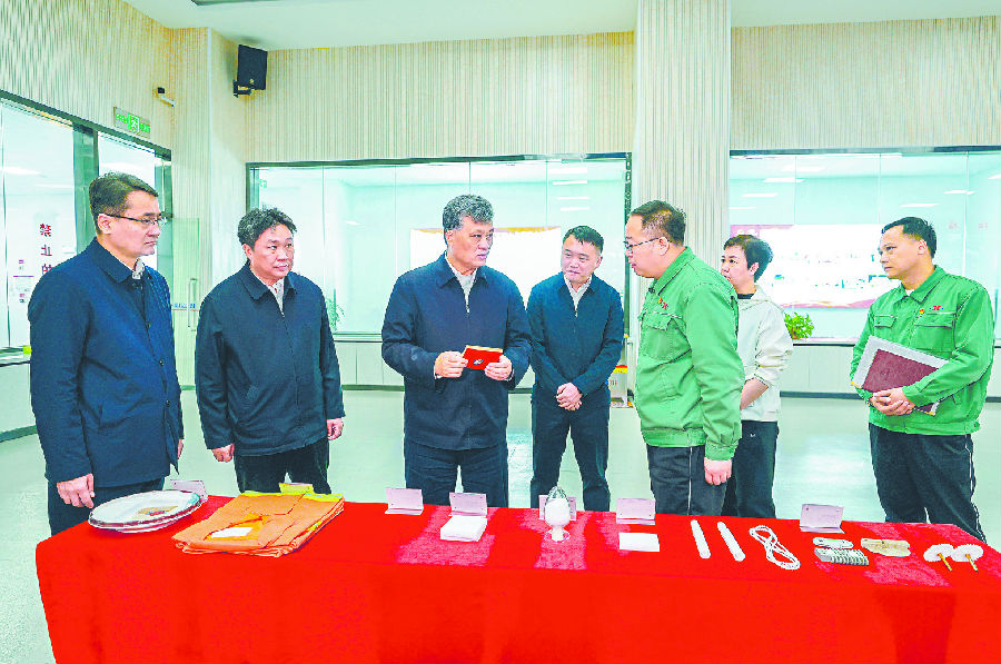在玛纳斯县,马兴瑞走进新疆嘉润资源控股有限公司,深入生产车间察看电解铝生产情况;来到新疆心连心能源化工有限公司和新疆中能万源化工有限公司,了解化肥产品生产、项目建设进展等,同企业负责人交流。马兴瑞强调,要立足新疆煤炭资源优势潜力,加快资源高效转化利用,积极推进重点项目建设,以企业发展效益提升支撑区域经济发展壮大。马兴瑞详细询问各企业能耗、排放、技改等情况,希望企业加大环保投入,积极推进技术改造和工艺优化,加快绿色低碳转型,助推“乌—昌—石”区域大气污染防治不断深化。马兴瑞强调,要聚焦区域高质量发展重点任务,持续发展资源精深加工产业,推动重点开发区建设提质增效,不断增强县域重点产业规模实力、集聚水平、创新能力,为经济社会发展增势赋能。要坚持走生态优先、绿色发展之路,加大重点行业、重要领域绿色化改造力度,大力发展清洁生产,提高能源资源利用效率,建设新型能源体系,持续增强发展潜力和后劲。要着力守牢安全生产底线,更好统筹发展和安全,压实各方责任特别是生产经营单位主体责任,常态化做好隐患排查整治工作,坚决防止发生重特大安全生产事故。