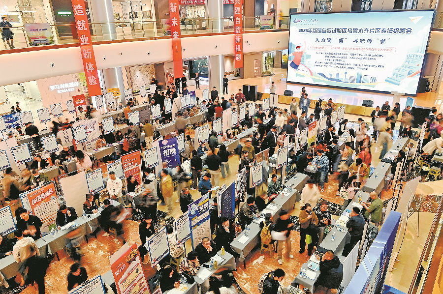 4月8日,2025年中国(新疆)自由贸易试验区乌鲁木齐片区专场招聘会在乌市水磨沟区红星美凯龙中庭举行。