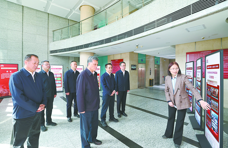 4月9日,自治区党委书记马兴瑞就国安工作、财经工作在有关单位调研。这是马兴瑞参观“全民国家安全教育·走深走实十周年”主题展览。 石榴云/新疆日报记者 崔志坚 摄