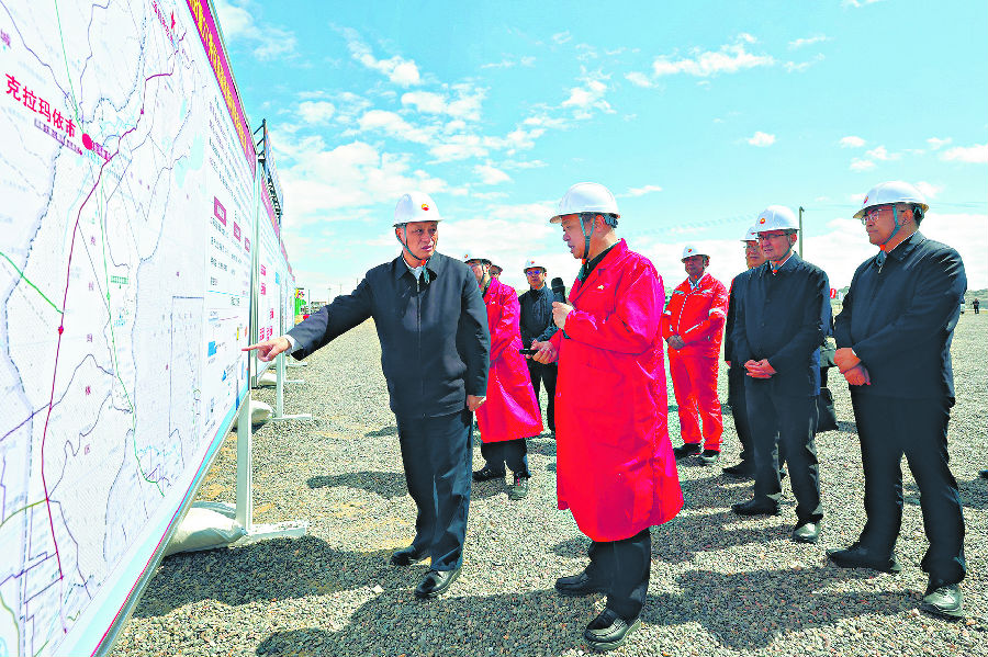 马兴瑞来到克拉玛依风城油田高温光热利用先导试验项目建设现场,了解光热制蒸汽驱动稠油开采试验进展和应用前景等,听取油气生产用能清洁替代、新能源规划发展等情况介绍,强调要统筹油气保障供应与绿色低碳转型,积极拓展油气与新能源融合发展路径,推进绿色油气田示范建设,加快油气产业转型升级。马兴瑞还详细询问油田油气生产进展成效,希望企业着眼保障国家能源安全,持续推进油气勘探开发和增储上产,强化重点产能项目建设,有效推动油气增产保供。