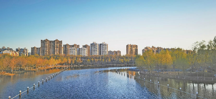 克拉玛依河畔城市景观。 (资料图)