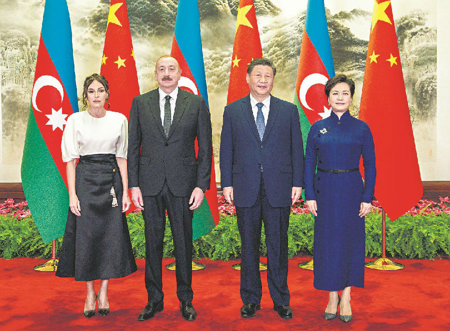 4月23日上午,国家主席习近平在北京人民大会堂同来华进行国事访问的阿塞拜疆总统阿利耶夫举行会谈。这是习近平和夫人彭丽媛同阿利耶夫和夫人阿利耶娃合影。 新华社记者 黄敬文 摄