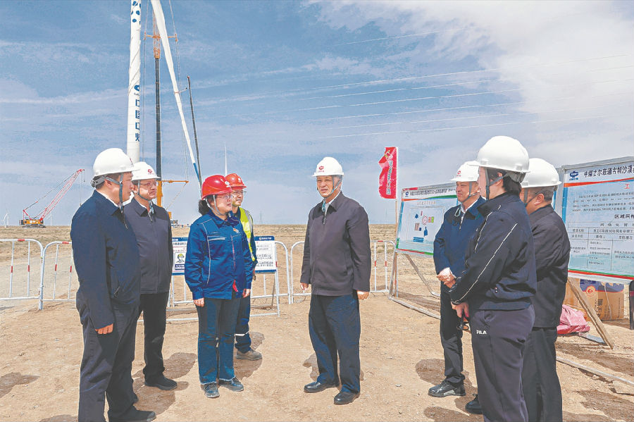 在古尔班通古特沙漠新能源基地,马兴瑞来到中煤40万千瓦风电项目、华电80万千瓦风电项目建设场地,察看风场建设进展,同项目负责人和有关同志详细交流。他强调,要聚焦重大项目,加快推进“沙戈荒”新能源基地建设,不断壮大新疆风电产业规模,有效带动相关产业发展,扩大就业容量,培育经济增长新动能。要加强新能源和电力发展规划衔接,推动源网协调发展。