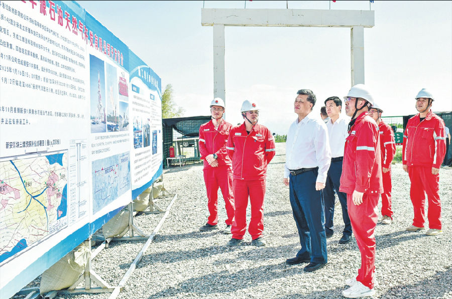 在石河子,马兴瑞先后实地调研了新疆华源石油天然气开发有限公司新安1井、新疆油田公司采气一厂玛河采气作业区锋探1井。在详细了解区块油气资源蕴藏、探采进度、项目投资等情况后,他强调,要站在保障国家能源安全的战略高度,大力支持兵团能源资源产业发展,强化政策支持和设施保障,持续推进油气增储上产,多措并举提升供应保障能力。要加快油气资源就地加工转化,不断延伸产业链,推动产业集群集聚发展。