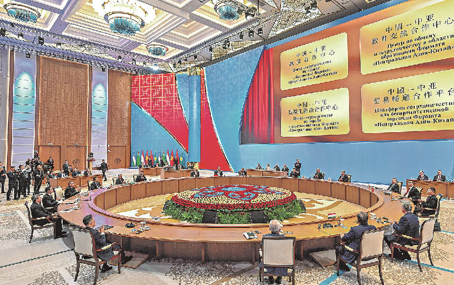 当地时间6月17日下午,第二届中国—中亚峰会在阿斯塔纳独立宫举行。哈萨克斯坦总统托卡耶夫主持会议。中国国家主席习近平、吉尔吉斯斯坦总统扎帕罗夫、塔吉克斯坦总统拉赫蒙、土库曼斯坦总统别尔德穆哈梅多夫、乌兹别克斯坦总统米尔济约耶夫出席。这是习近平同中亚五国元首共同出席中国—中亚减贫合作中心、教育交流合作中心、荒漠化防治合作中心和贸易畅通合作平台揭牌仪式。