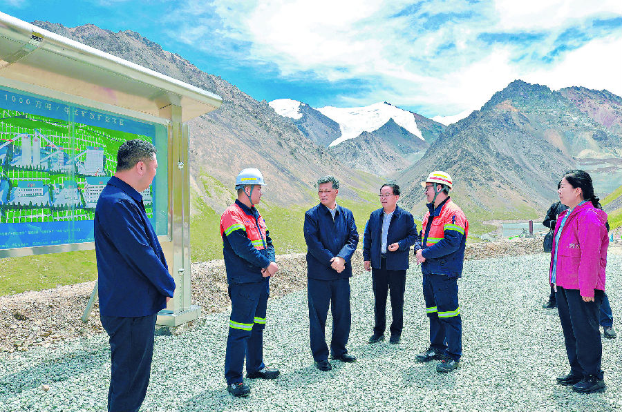 6月22日,自治区党委书记马兴瑞在巴音郭楞蒙古自治州和静县调研。这是马兴瑞深入高海拔山区,实地察看铁矿企业重点采矿项目建设进展,详细了解资源分布、采选工艺、产业发展前景等情况。 石榴云/新疆日报记者 崔志坚 摄