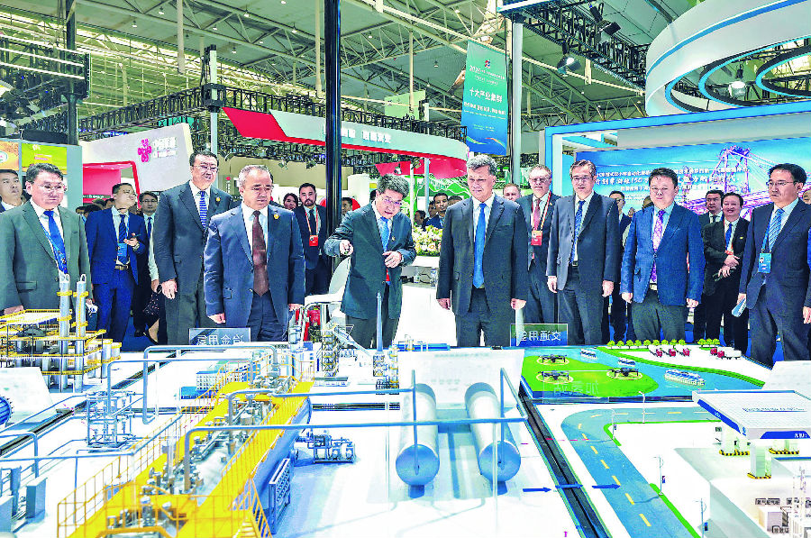 开馆活动中,马兴瑞、艾尔肯·吐尼亚孜等与中外嘉宾共同巡馆,察看了重点展区设置和展示情况。马兴瑞同国内外参展商深入交流,欢迎大家参加此次博览会,寻求合作机遇,促进共赢发展。他说,在习近平主席和中共中央坚强领导下,中国新疆取得了令人瞩目的发展成就,正成为备受国内外企业青睐的发展高地、开放前沿、投资沃土。我们牢牢把握高质量发展首要任务和开放合作时代主题,依托得天独厚的资源禀赋和区位优势,全力推动经济发展提质增效,以“十大产业集群”为支撑的现代化产业体系加快构建,全方位国际交流合作向世界更大范围拓展。此次商博会是新疆展示经济社会发展成就,拓展高水平对内对外开放,同中外企业共享丝绸之路经济带核心区机遇、携手融入共建“一带一路”的重要平台。希望广大参展商充分展示优势特色,深入开展经贸对接,收获更加丰硕的展览推广、投资合作成果。中国新疆诚挚欢迎中外企业常来考察交流、深化务实合作,共同实现繁荣发展。