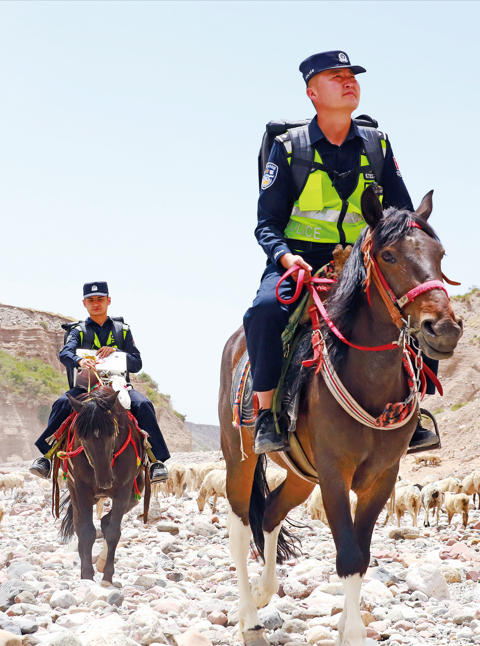 A+ | a近日,新疆出入境边防检查总站阿克苏边境管理支队吐木秀克边境派出所“党员服务队”民警携带救援装备与药品深入牧区,为牧民转场服务。民警排查隐患、指挥交通、调解纠纷,普及法律法规和安全知识。 王举南 摄