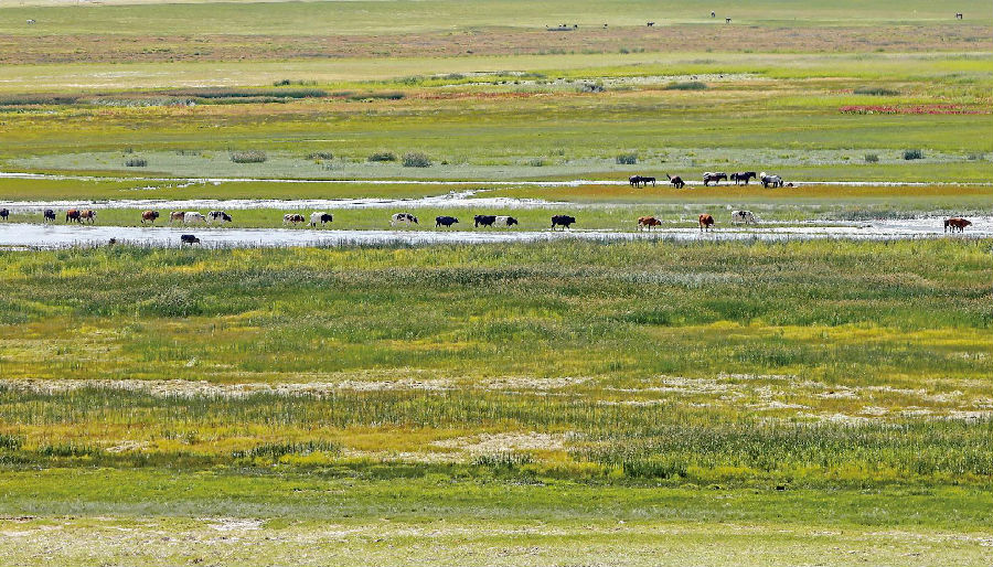 8月,帕米尔高原东部的塔合曼湿地迎来牧草收获季,8000多亩天然牧草随风起伏,与湿地、河流、雪山共同勾勒出一幅秋日高原的壮美画卷。这里既是丰收的牧场,更是帕米尔高原上一幅灵动的生态画卷,以多姿多彩诉说着人与自然和谐共生的美好故事。 石榴云/新疆日报记者 蔡增乐 摄