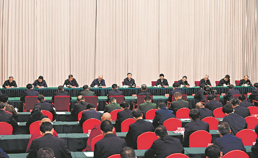 8月20日下午,率中央代表团出席西藏自治区成立六十周年庆祝活动的中共中央总书记、国家主席、中央军委主席习近平在拉萨听取西藏自治区党委和政府工作汇报,发表了重要讲话。 新华社记者 谢环驰 摄