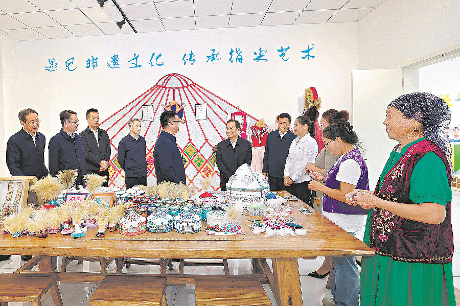 8月18日至20日,自治区党委书记、兵团党委第一书记、第一政委陈小江在阿勒泰地区和兵团第十师北屯市调研。这是8月19日,陈小江来到阿勒泰市拉斯特乡拉斯特村党群服务中心非遗手工坊,了解农文旅融合带动群众增收致富等情况。