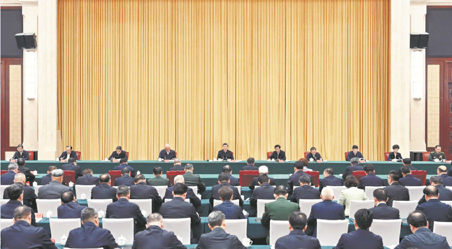 9月24日下午,率中央代表团出席新疆维吾尔自治区成立70周年庆祝活动的中共中央总书记、国家主席、中央军委主席习近平在乌鲁木齐听取新疆维吾尔自治区党委和政府工作汇报,发表了重要讲话。 新华社记者 谢环驰 摄