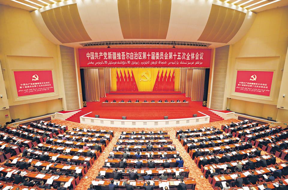 11月10日至11日,中国共产党新疆维吾尔自治区第十届委员会第十五次全体会议在乌鲁木齐召开。自治区党委书记陈小江受自治区党委常委会委托作工作报告,并就贯彻落实全会精神作讲话。 石榴云/新疆日报记者 谢龙 摄