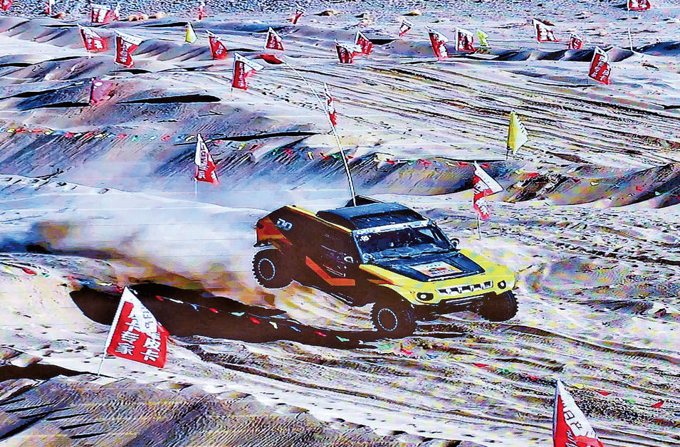 A+ | a11月12日,为期5天的2025博斯腾湖沙漠文化旅游节暨“东利机械杯”(减震性能)冬季沙漠越野争霸赛在博斯腾湖大河口旅游景区圆满落幕。该赛事历经三年深耕,已成功跻身2025中国体育旅游博览会“中国体育旅游精品赛事项目”。图为参赛车辆在激烈角逐中。
