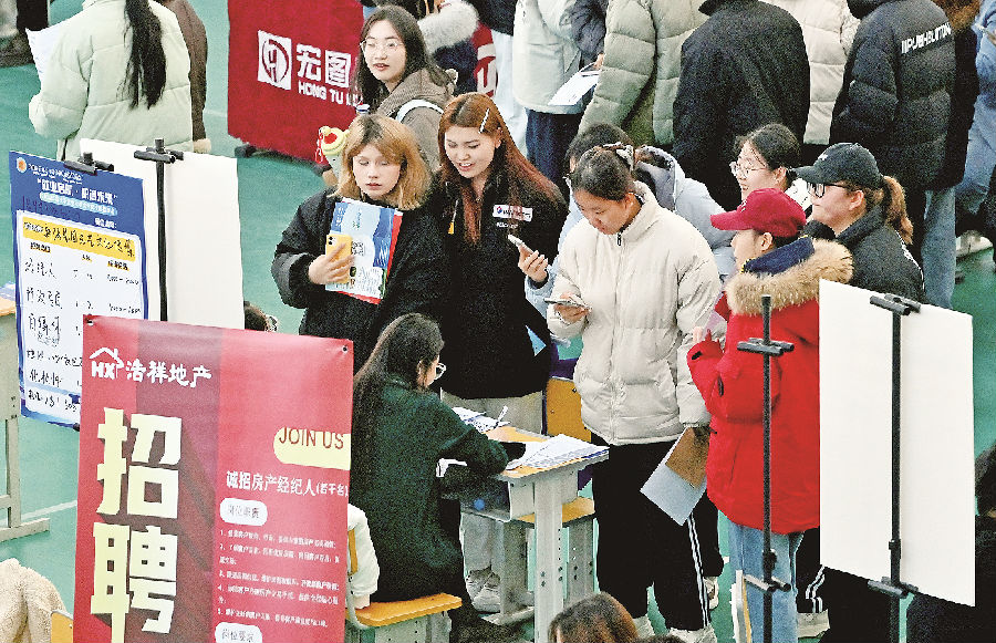 本次招聘会吸引了近百家优质企业参会,提供就业岗位2000余个。图为大学生向用工单位工作人员了解招聘细则。