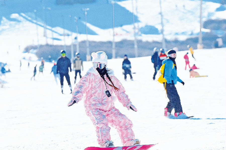 11月29日,在丝绸之路国际滑雪场度假区,市民们尽享冰雪乐趣。