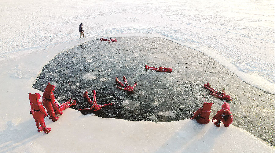 12月5日,在阿勒泰市阿苇滩镇,游客身着红色特制防寒服,体验阿勒泰冰浮俱乐部冰浮项目。该项目常见于俄罗斯、芬兰、冰岛等地,此次落地阿勒泰市,进一步丰富了当地旅游业态,吸引大批游客前来体验,感受“与冰共舞”的独特魅力。 张福新 摄