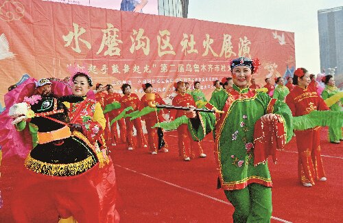 12月14日上午,乌鲁木齐市水磨沟区吾悦广场锣鼓喧天、喜气洋洋,正式开启“打起手鼓舞起龙”社火展演序幕,来自各街道的14支社火队伍依次亮相,为市民带来一场民俗文化盛宴。