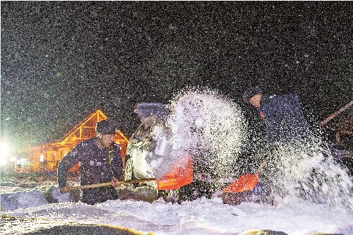 12月16日,阿勒泰地区迎来强降雪天气,给群众出行带来诸多不便。当晚,新疆出入境边防检查总站阿勒泰边境管理支队喀纳斯边境派出所先后接到5起辖区群众及游客求助,均为车辆滑下路基,人员和车辆被困。民警迅速前往救援,采取车拉、人推、挖雪等方式,成功帮助被困5车20余人脱险。图为民警清理车下积雪。 王友波 摄