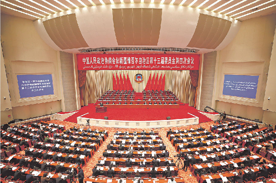 1月26日,中国人民政治协商会议新疆维吾尔自治区第十三届委员会第四次会议在新疆人民会堂开幕。石榴云/新疆日报记者 谢龙 摄