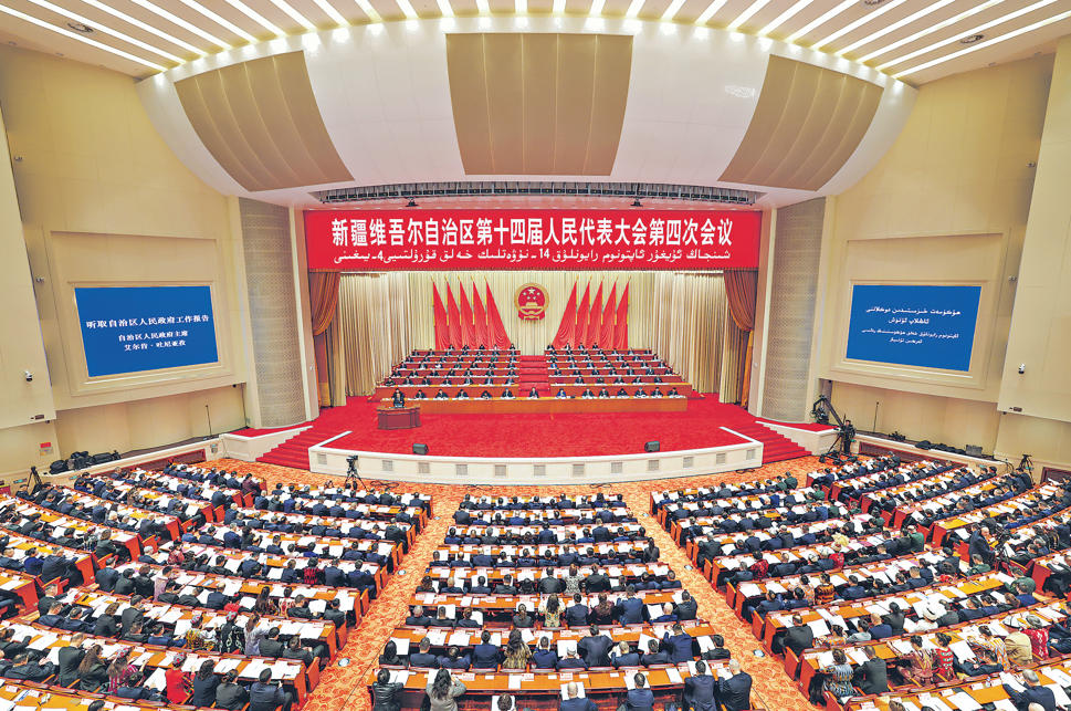 1月27日,新疆维吾尔自治区第十四届人民代表大会第四次会议在新疆人民会堂开幕。 石榴云/新疆日报记者 崔志坚 摄
