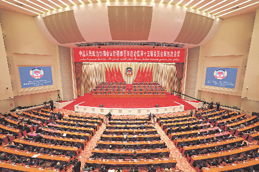 1月30日,中国人民政治协商会议新疆维吾尔自治区第十三届委员会第四次会议在新疆人民会堂闭幕。 石榴云/新疆日报记者 崔志坚 摄