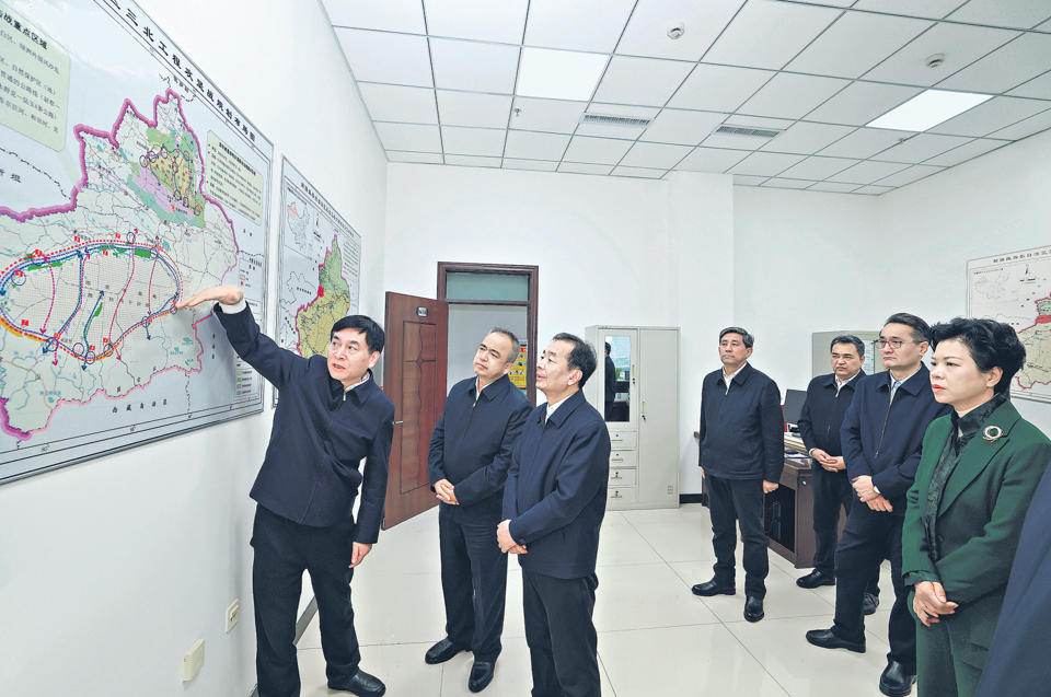 在自治区水利厅,陈小江、艾尔肯·吐尼亚孜深入了解全区水旱灾害防御平台建设、应急处置等情况,走进相关处室听取水资源运行管理工作介绍。陈小江强调,水利关乎国计民生,是支撑保障新疆经济社会发展的关键因素。要深入贯彻习近平总书记“节水优先、空间均衡、系统治理、两手发力”的治水思路,全方位贯彻“四水四定”原则,走好水安全有效保障、水资源高效利用、水生态明显改善的集约节约发展之路。要统筹节水蓄水调水,以农业为重点推进深度节水控水,加快重大水资源调蓄工程建设,提升水资源高效配置和合理利用水平。要完善水利基础设施,加快水网主骨架和骨干工程建设,有序推进各级水网协同融合,建设现代化高质量水利基础设施网络。要推进水生态水环境治理,全面落实河湖长制,改善河湖生态环境,推进地下水超采区综合治理,深化水土流失综合治理,打好碧水保卫战。