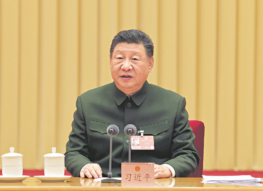3月7日下午,中共中央总书记、国家主席、中央军委主席习近平出席十四届全国人大四次会议解放军和武警部队代表团全体会议并发表重要讲话。 新华社记者 李刚 摄