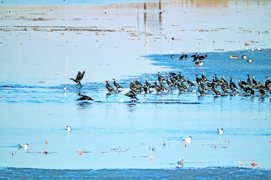 随着天气转暖,冰雪消融,绿头鸭、黑嘴鸥等鸟类在百泉湖湿地栖息繁衍。近年来,呼图壁县持续加大湿地保护与修复力度,当地生态环境得到有效改善。 陶维明 摄
