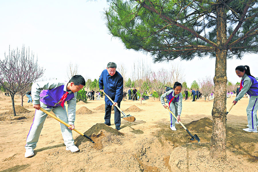 习近平在参加首都义务植树活动时强调 为山川大地增添锦绣 让中国式现代化底色更加亮丽 李强赵乐际王沪宁蔡奇丁薛祥李希参加