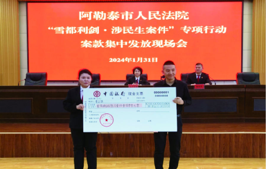本报阿勒泰讯(通讯员 帕力拉)1月31日,阿勒泰地区中级人民法院、兵团第十师中级人民法院在8个活动现场同步开展涉民生案件案款发放活动。据了解,在春节前夕,兵地两级法院联合发力,执结了一批涉民生案件,用司法护航民生。