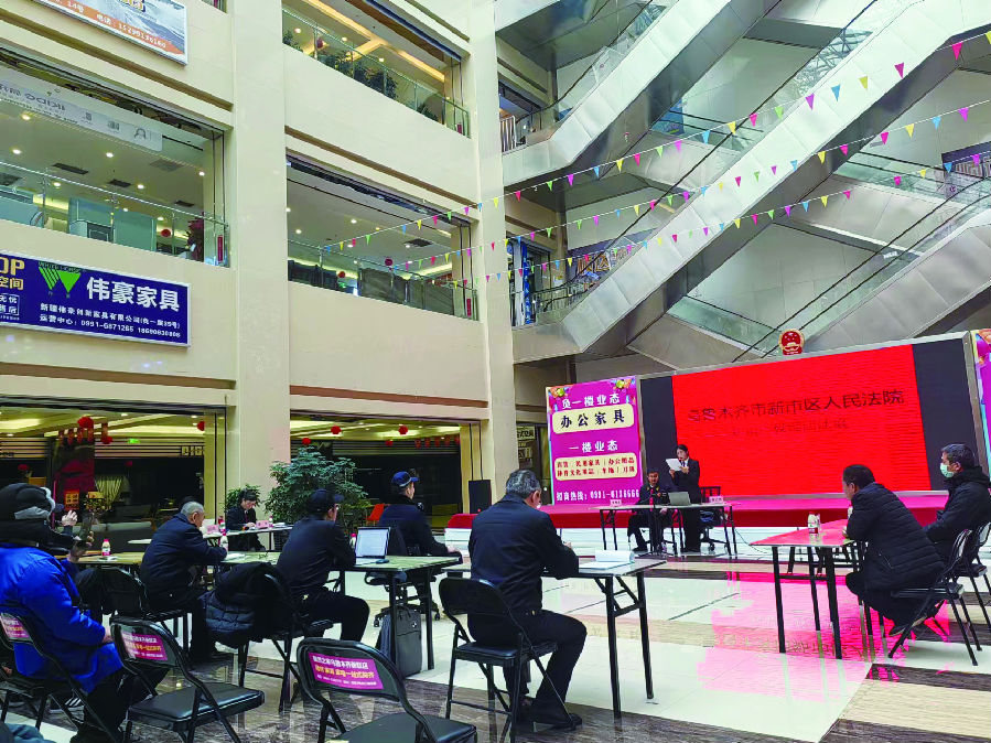 1月30日,乌市新市区法院庭审现场。