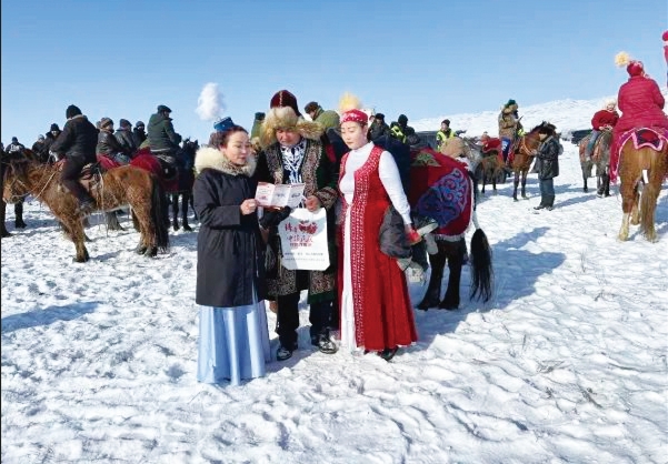 2月20日,沙湾市西戈壁镇以草原冰雪文化旅游节活动为契机,开展“美好生活·民法典相伴”主题宣传活动。西戈壁司法所普法工作者在“普法摊位”前向群众深入讲解民法典,引导群众运用法律武器维护合法权益。